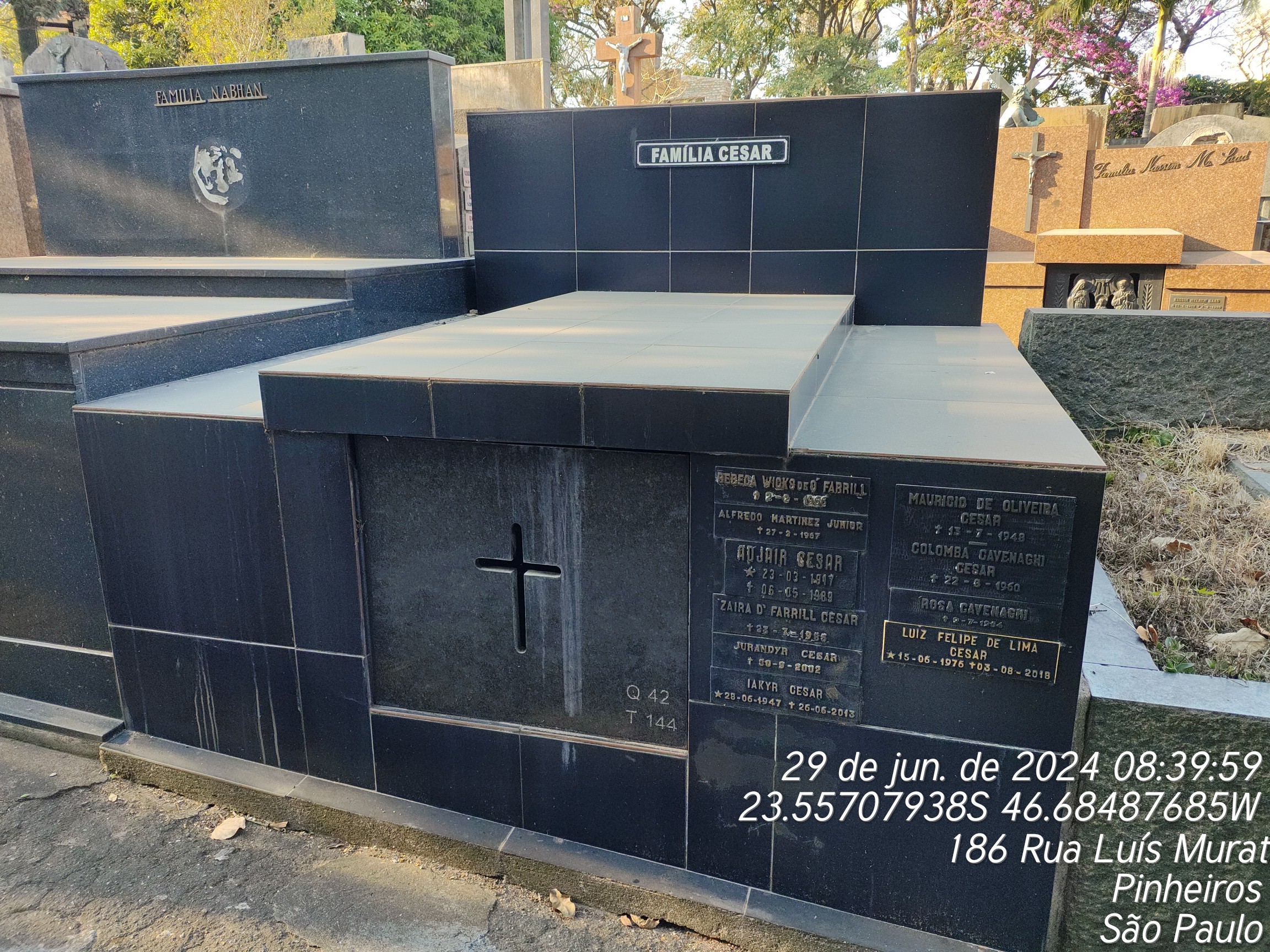 ADJAIR CESAR - 06/05/1989, COLOMBO CAVENAGHI CESAR - 23/08/1960, ZAIRA OFARRILL CESAR - 23/07/1985, REBECA WICKS DE O. FARRILL - 02/02/1966, ROSA CAVENAGHI - 09/07/1964, JURANDYR CESAR - 30/09/2002, ALFREDO MARTINES JUNIOR - 27/02/1967, MAURICIO DE OLIVEIRA CESAR - 13/07/1948