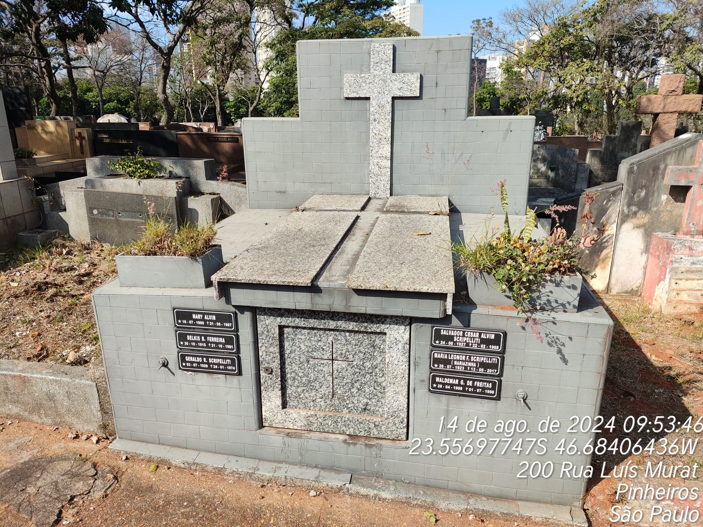 WALDEMAR ASSIS FREITAS - 01/07/1998, MARY DE OLIVEIRA ALVIM - 21/06/1987, BELKIS BAPTISTA FERREIRA - 21/10/1981, SALVADOR CESAR ALVIM SCRIPILLITI - 22/02/1968, GERALDO ROBERTO SCRIPELLITI - 24/01/1974
