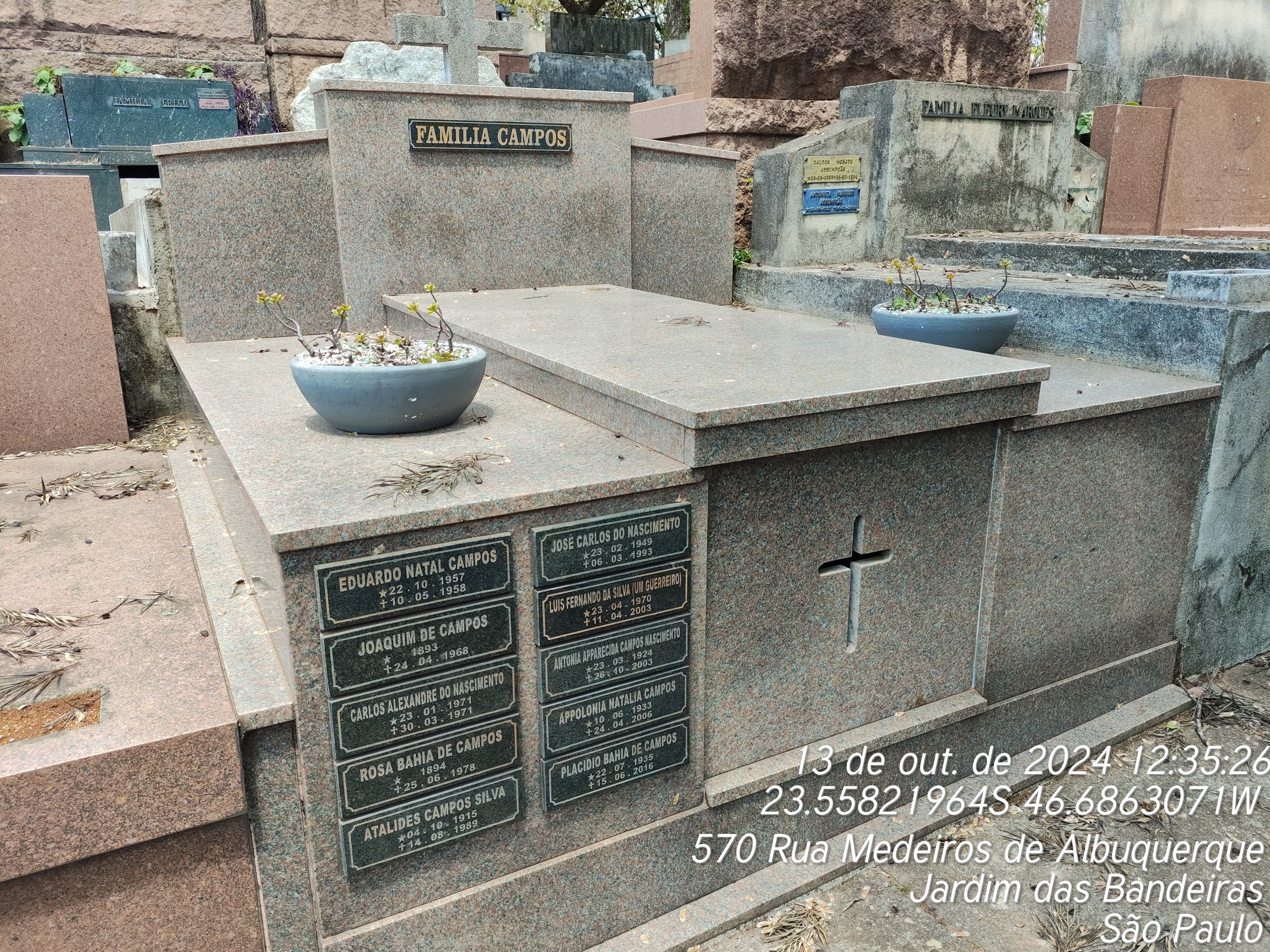 ANTONIA APPARECIDA CAMPOS NASCIMENTO - 26/10/2003, JOSE CARLOS DO NASCIMENTO - 07/03/1993, LUIZ FERNANDO DA SILVA - 11/04/2003, NEUSA DE CAMPOS - 25/10/2000, APPOLONIA NATALIA CAMPOS - 24/04/2006, APPARECIDA COSTA NASCIMENTO - 28/02/1989, MARILENE DE CAMPOS - 15/07/1996, JULVILINA DE OLIVEIRA - 19/06/1973, ROSA BAHIA DE CAMPOS - 25/06/1978, EDUARDO CAMPOS - 10/05/1958, BRIANO BAHIA FILHO - 24/06/1972, ISAEL DE CAMPOS - 29/11/1956, BENEDITO FILADELFO DE CAMPOS - 30/12/1962, JOAQUIM DE CAMPOS - 24/04/1968, CARLOS ALEXANDRE DO NASCIMENTO - 30/03/1971, ATALIDES CAMPOS DA SILVA - 15/08/1989, OSCAR SILVA - 17/05/1976
