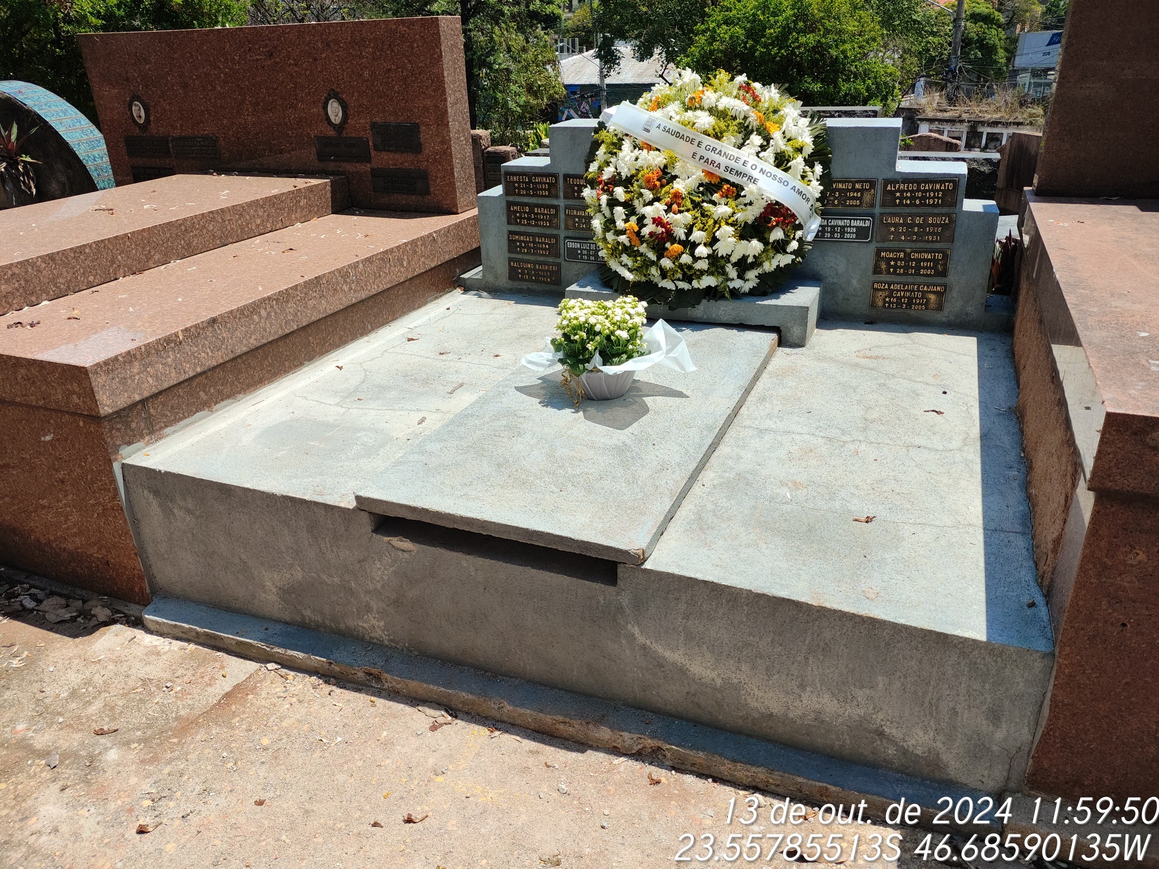 ROSA ADELAIDE CAJIANO CAVINATO - 13/03/2005, GIOCONDA CAVINATO BARALDI - 29/03/2020, LUIZ CAVINATO NETO - 09/06/2005, MOACYR CHIOVATTO - 28/01/2003, BALDUINO BARBIERI - 13/04/1964, ALFREDO CAVINATO - 14/06/1971, ERNESTA CAVINATO - 20/05/1950, ESTANISLAU MAHNIC - 26/10/1987, DOMINGAS FALCIONI BORALDI - 27/07/1962, THEODULO MARQUES - 30/09/1969, LAURA CAVINATO DE SOUZA - 05/02/1981, FIORAVANTE BARALDI - 24/07/1974, AMELIO BARALDI - 25/12/1955