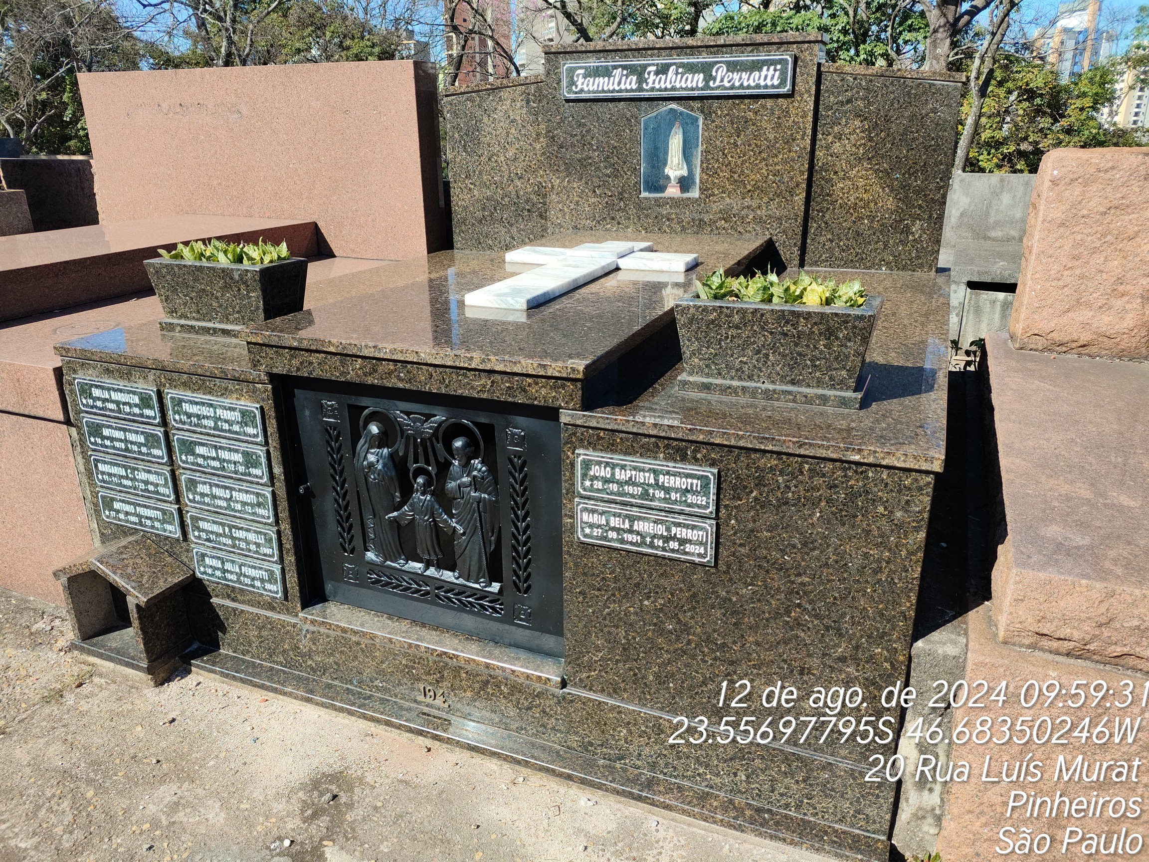 MARIA JULIA PERROTI - 04/08/2008, JOAO BAPTISTA PERROTTI - 04/01/2022, VISRGINIA PEROTI CAPRINELI - 22/05/1997, JOSE PAULO PERROTTI - 29/12/1992, EMILIA MARQUEZINE FABIAM - 27/09/1950, MARGARIDA CORTEGIANO - 22/09/1970, ANTONIO PIERROTTI - 25/03/1982, AMELIA FABIANO - 12/07/1990, ANTONIO FABIAN - 11/05/1959, FRANCISCO PERROTI - 29/08/1984, PASCHOAL CARPINELLI - 28/04/1978
