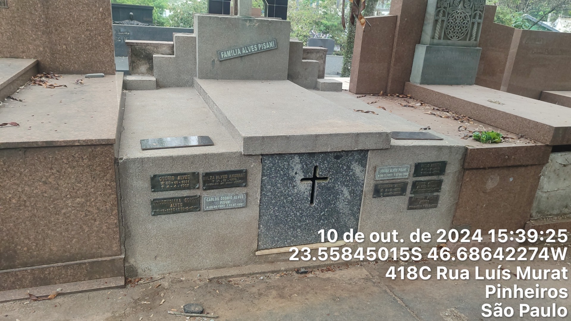 POLICENA ALVES ARRUDA - 10/10/1999, CARLOS OSORIO ALVES PISANI - 11/07/1991, NILZA ALVES ANDRADE - 22/10/1970, PAULO ARRUDA - 13/04/1966, JOVIRA ALVES PISANI - 27/06/1989, PRODENCIANA GOMES ALVES - 30/06/1968, MARCO ANTONIO ALVES PISANI - 02/03/1973, OSORIO ALVES - 04/04/1967, ANTONIO PISANI JUNIOR - 28/09/1987