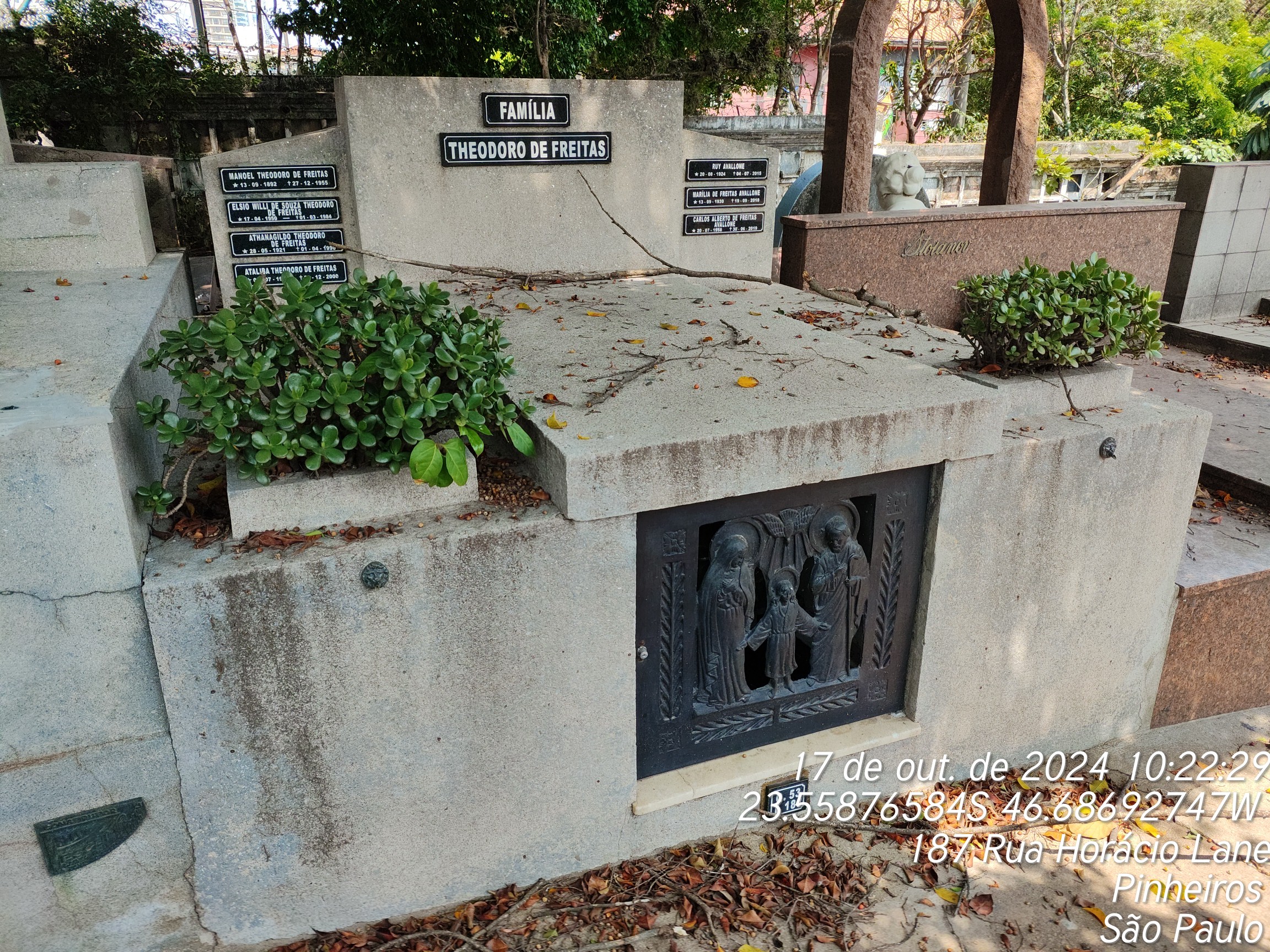 ATALIBA THEODORO DE FREITAS - 23/12/2000, ANTONIETTA JORGE - 11/09/1995, UMBERTO VERGILIO BASEGGIO - 25/08/2002, ATHANAGILDO THEODORO DE FREITAS - 01/04/1990, ELSIO WILLI DE SOUZA THEODORO DE FREITAS - 01/03/1984, MANOEL TEODORO DE FREITAS - 27/12/1955