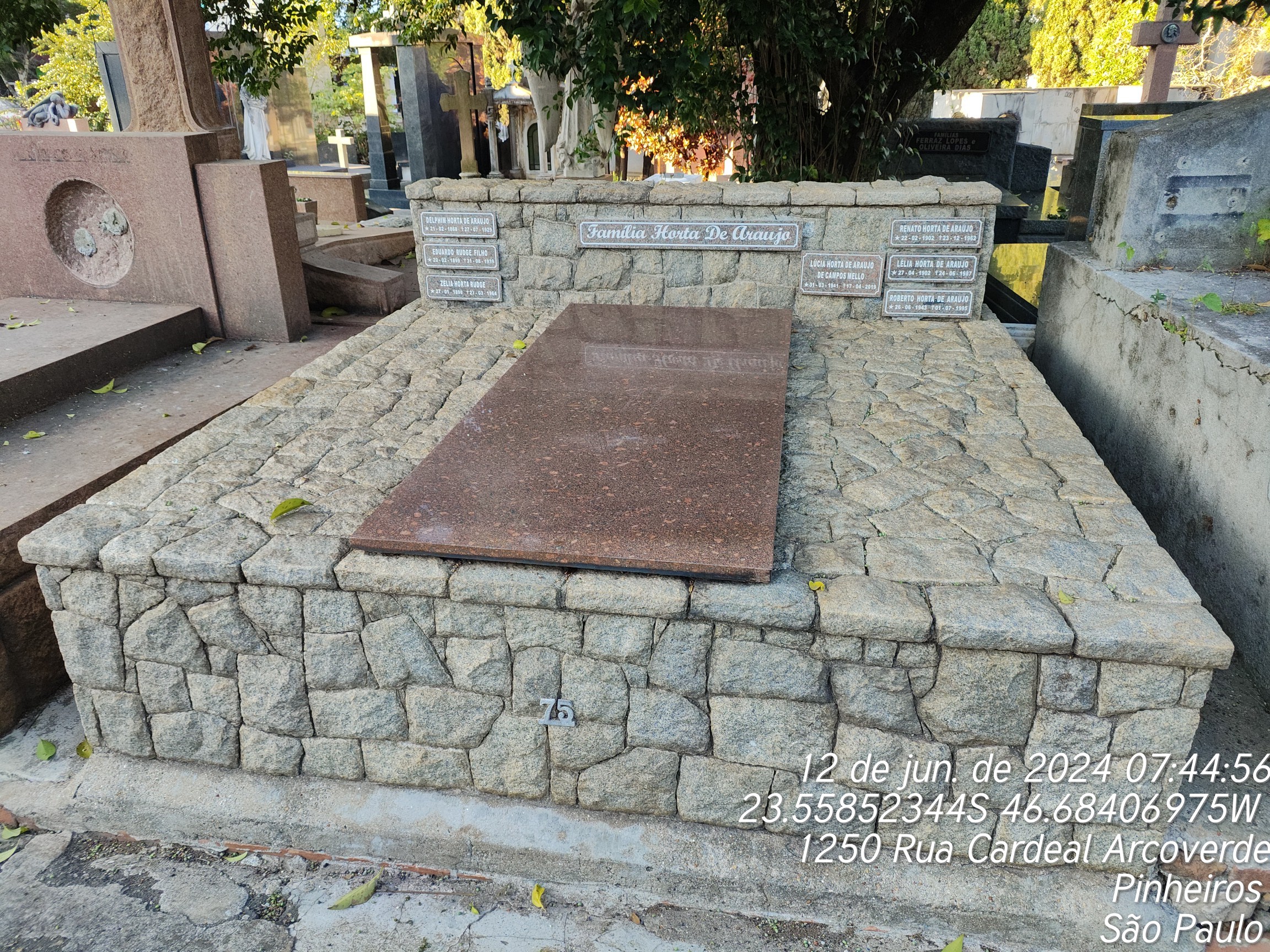ROBERTO HORTA DE ARAUJO - 01/07/1995, EDUARDO RUDGE FILHO - 31/08/1939, ZELIA HOSTA RUDGE - 27/03/1964, RENATO HORTA DE ARAUJO - 23/12/1962, LELIA HORTA DE ARAUJO - 24/08/1987